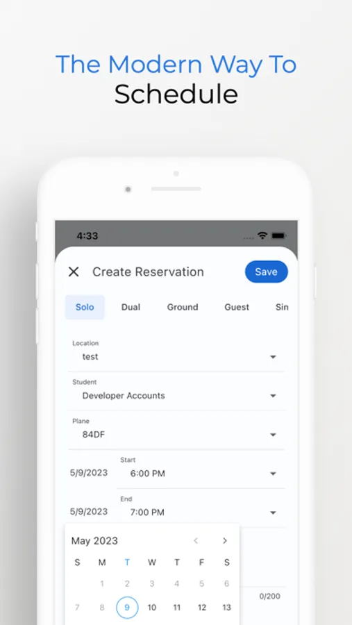 AerScheduler is a way to manage your fleet, personnel, and scheduling all from your mobile device. Perfect for flight schools, flight clubs, and aircraft owners.