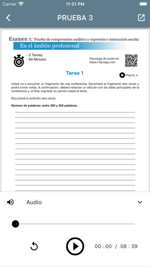 You can download the writing and oral exam as PDF file and print it after saving on a smartphone device or cloud.