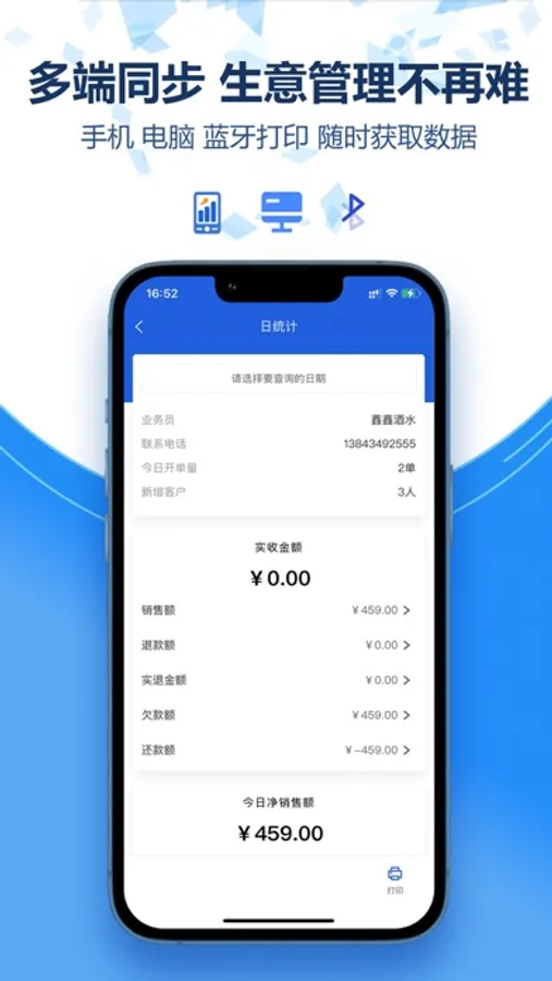 慧快销APP,协助快消品商家一键开单 价格记忆 蓝牙打印 异地协同