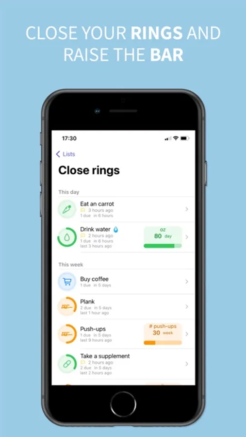 Track routines and tasks in one app without confusion: Routines appear as rings, tasks as checkboxes.