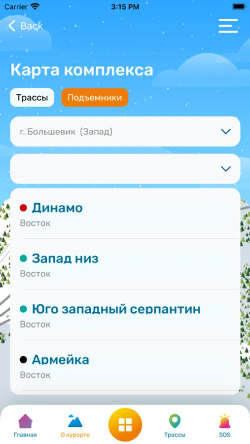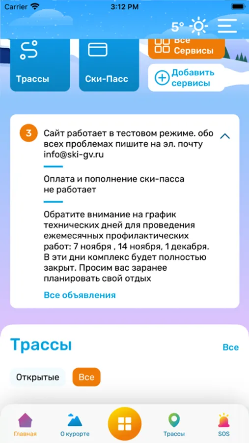 - спланировать катание прочитав описание подъемников и трасс, цены на катание;