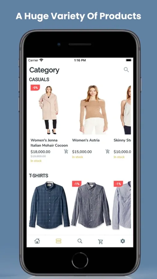 Simply download the app on your device and create an account for yourself. Now, you will be taken to the Home Screen where you will find links to all category products.