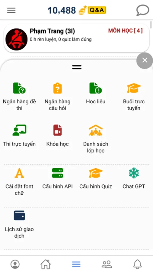 - Chọn các môn học để làm các câu hỏi và đề thi được người dùng khác công khai. Tham gia thảo luận liên quan đến câu hỏi.