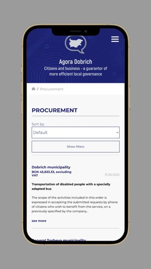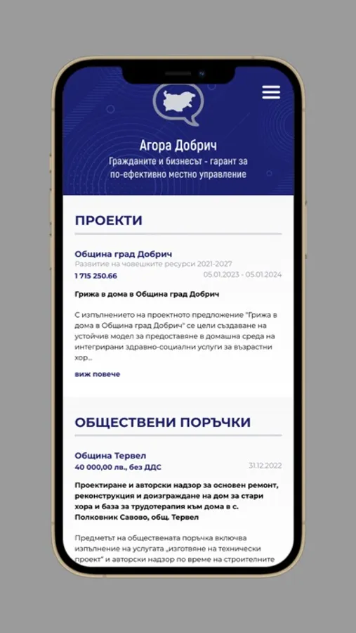 Мобилно приложение AgoraDobrich е единна точка за подаване на неспешни сигнали във връзка с отклонения от нормалните условия на градската среда. Целта му е ефективна комуникация между гражданите и общинските администрации на територията на област Добрич. То ще работи 24 часа в денонощието, 7 дни в седмицата, като ще осигурява напълно безплатен достъп.