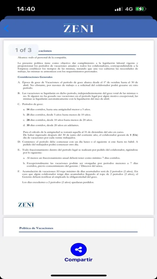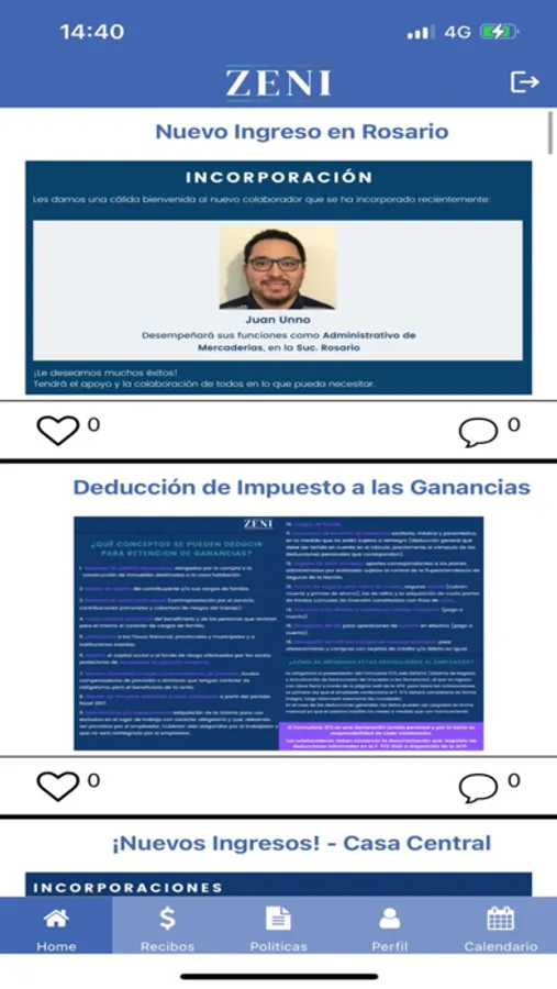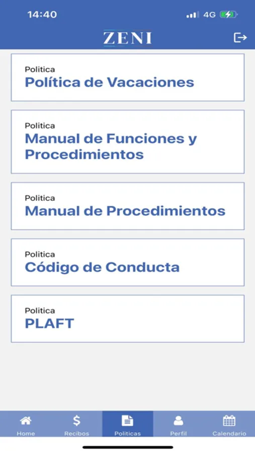 Plataforma para descargar los recibos de sueldos de todos los empleados de ZENI y tambien las politicas.