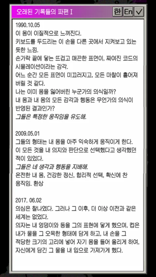 점점 더 풍요로워지고 있는 온라인 생태계 내, 인공사물들의 데이터 결합으로 탄생한 'ARTIJECTA'. 이 미지의 생명체는 활발히 사용되고 있는 공공 와이파이 공유기에 서식하고 있다고 알려진다. 이 어플리케이션은 그들의 신호를 탐지하고, 나아가 그들을 포착할 수 있는 기능이 탑재되어 있다. 'ARTIJECTA'를 포착하고, 숨겨진 진실을 품고 있는 단서를 획득하자.