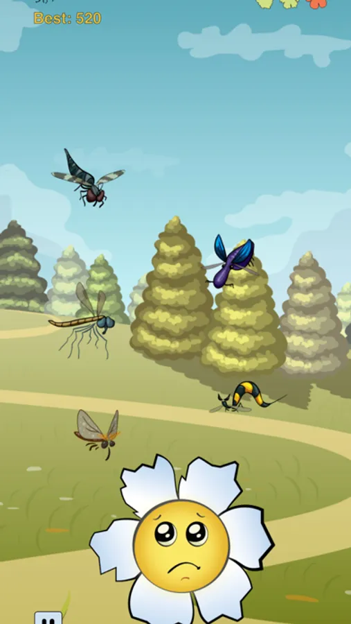 Enter the world where bugs want to tear the flower, but there are good bugs like bees, which need flowers to produce honey. Bees help the flower to grow but can’t smash other bugs; you should help bees to protect the flower by smashing other bugs. But there are some bugs, like ladybirds, which don’t want to harm the flower but can be really dangerous for you; if you smash the ladybird, the game will be over because it has a toxic pocket whit it, and it can be blown up if you smash it. Be careful because the ladybird also covers other bugs. And there are small mosquitoes, and they fly really fast; when you see them, it is better to try to smash them first; otherwise, you can miss them in seconds, and it can harm the flower.