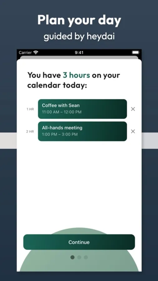 ‣ Review your day with nightly insights. Heydai shows you a recap of where your time went each day to celebrate wins and help you plan tomorrow accordingly. Want to look back on previous day? Heydai can show you historical recaps too.
