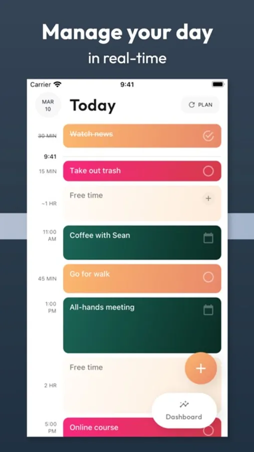 ‣ Manage your day in real-time. See availability on your timeline update as you check things off or postpone them. Get additional recommendations from Heydai as your free time opens up.