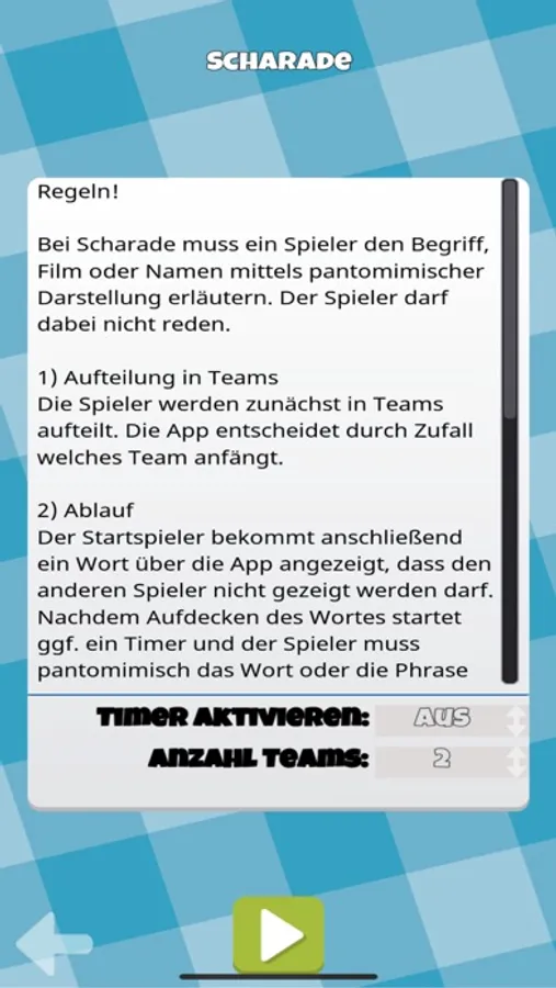 Die App unterstützt bei den gängigen Partyspielen und bietet eine riesige Datenbank an Begriffen. Für Scharade sind aktuell über 6000 Begriffe und bei 1 Wort über 4900 Wörter vorhanden. Damit bleibt ein langer Spielspaß erhalten.