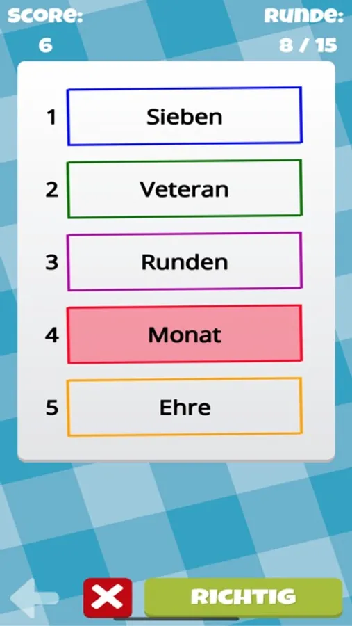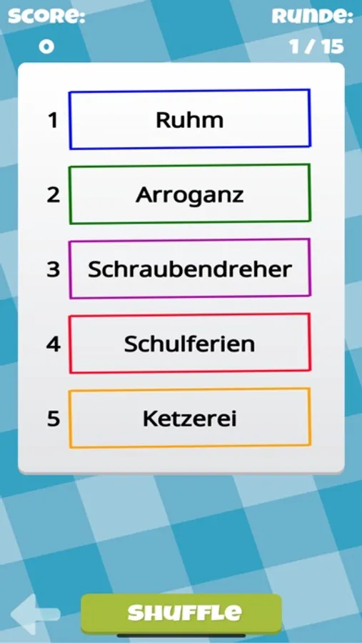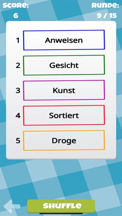 - Bereits verwendete Begriffe tauchen nicht nochmal auf. Der Wortspeicher kann jederzeit zurückgesetzt werden.
