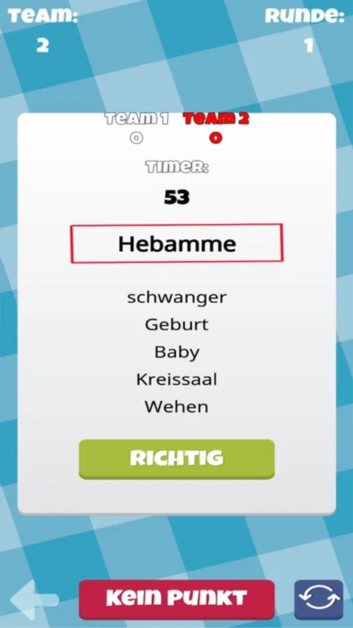 Ein Spieler muss einen Begriff, Film oder Namen umschreiben und darf dabei nicht die Wörter verwenden, die angezeigt werden. Das Team mit den meisten Punkten gewinnt.