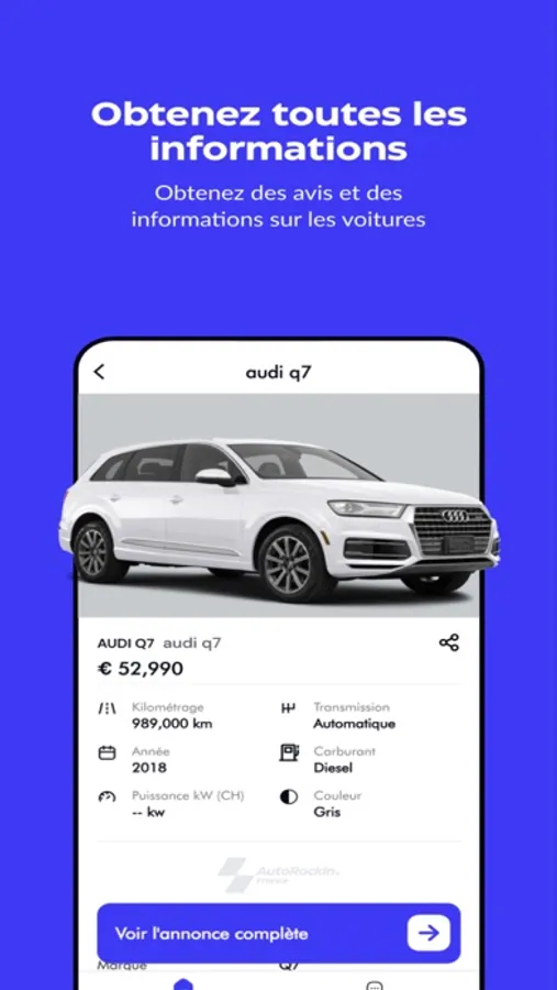 Autorockin est l'application idéale pour les amateurs de voitures qui cherchent leur prochain véhicule en France. Nous offrons une large sélection de véhicules de qualité