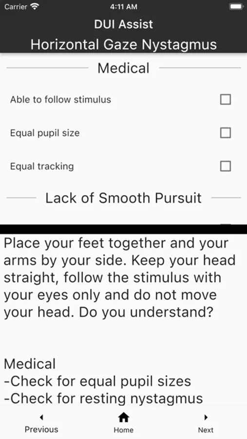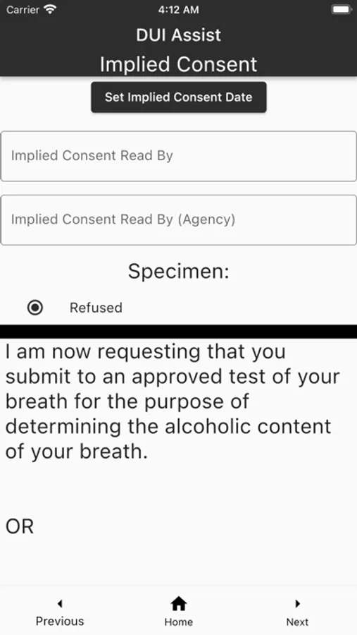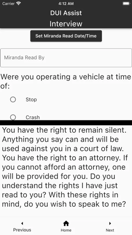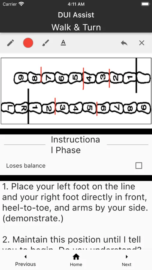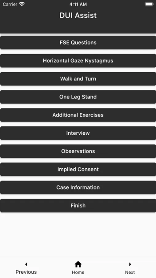 DUI Assist makes officers jobs easier by walking the officer through the DUI, step by step. While the officer makes their way through the app, the app has prompts for the officer to read out loud. This way the officer is clear and consistent with their instructions.