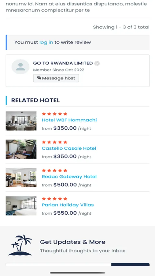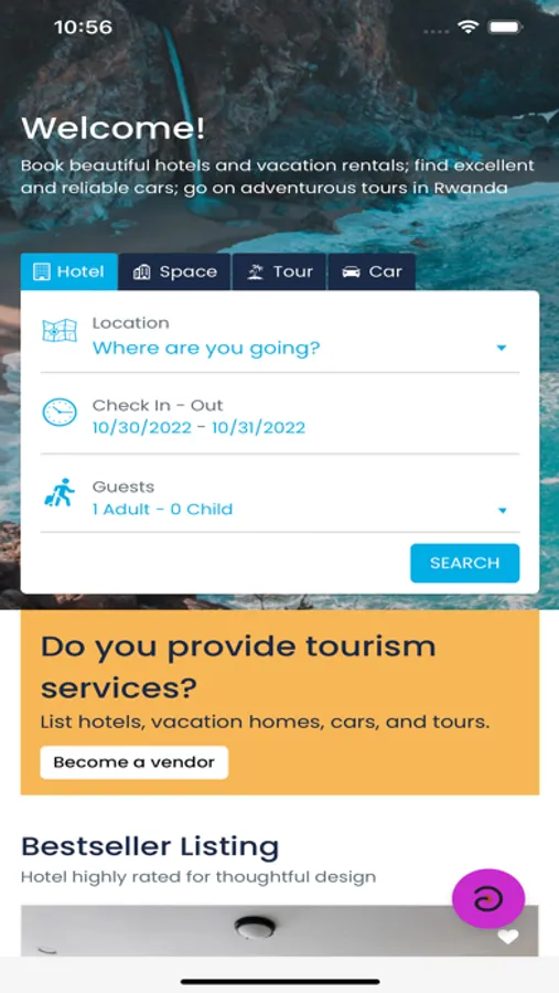 Go To Rwanda is a travel aggregator app. You can use our app to find hotels, vacation homes, car rentals, and tours in Rwanda.