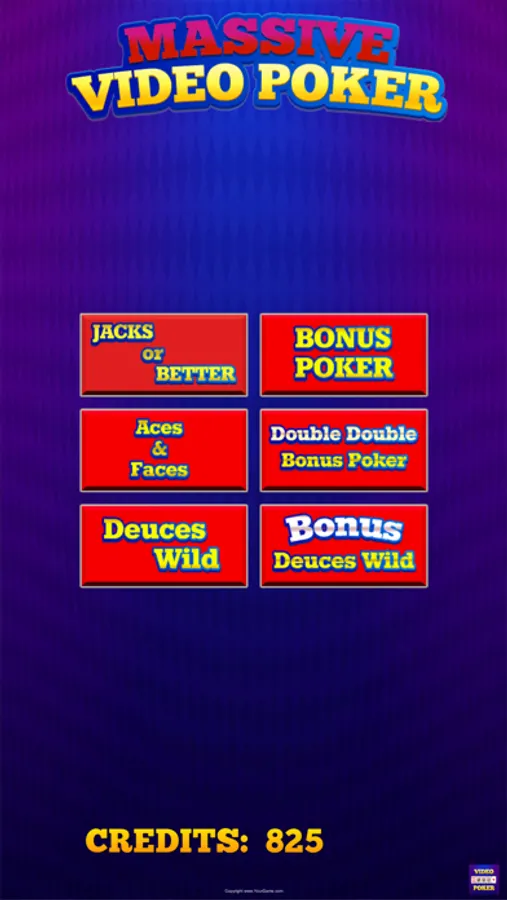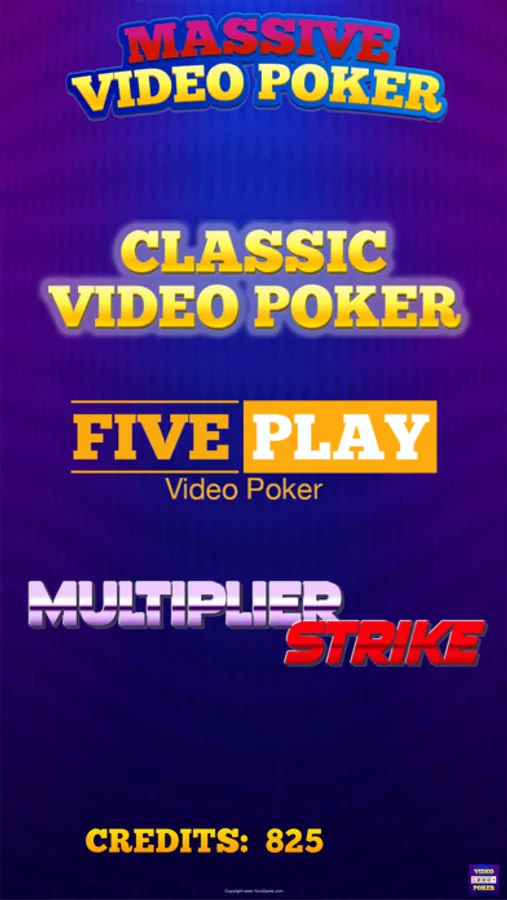 Massive Video Poker is a collection of unique video poker games. Each game features multiple payouts and unique gameplay. Playing games and earning points helps you unlock more games.