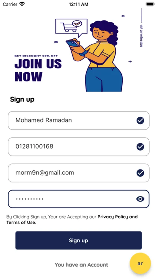 * Account: Allows you to share products on Aera with your friends and families through Facebook or other social networks.