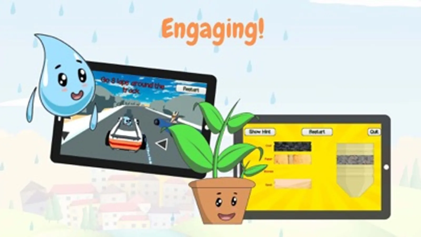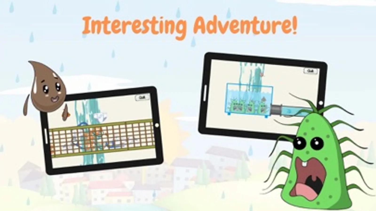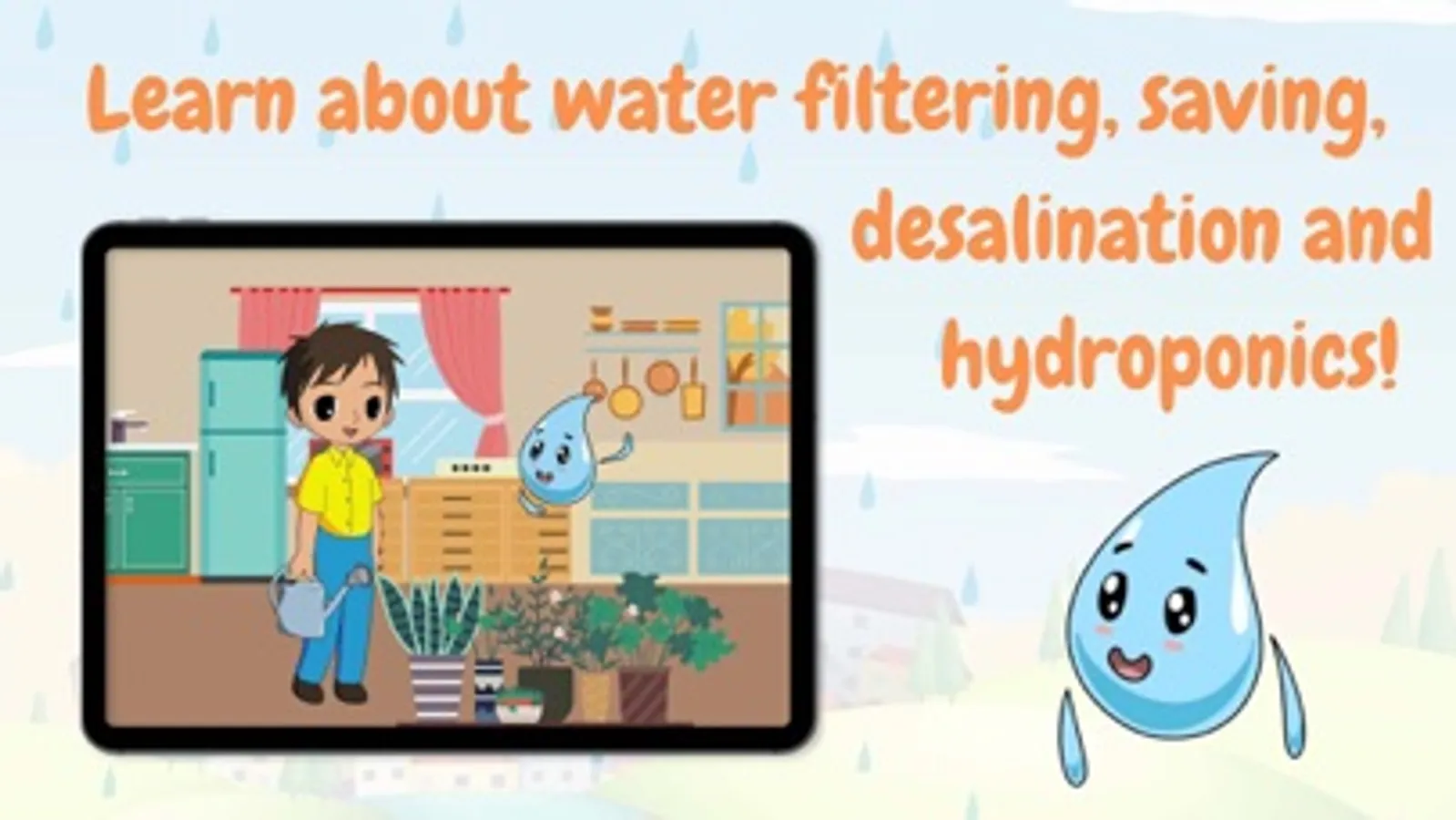 Have you ever wondered where the water goes after you flush the toilet? Do you know what you need to do to save the water resources? Could you imagine that vegetables can be grown without soil? Do you want your kid to know answers to these questions? Droopy Adventures is an educational mobile game for kids 4-6 years old. The game teaches kids about the concept of water filtration, reuse and hydroponics. Through gamification, children learn how valuable our water resources are. The game includes a theoretical part in the form of interaction between the main characters and 10 mini-games to practice.