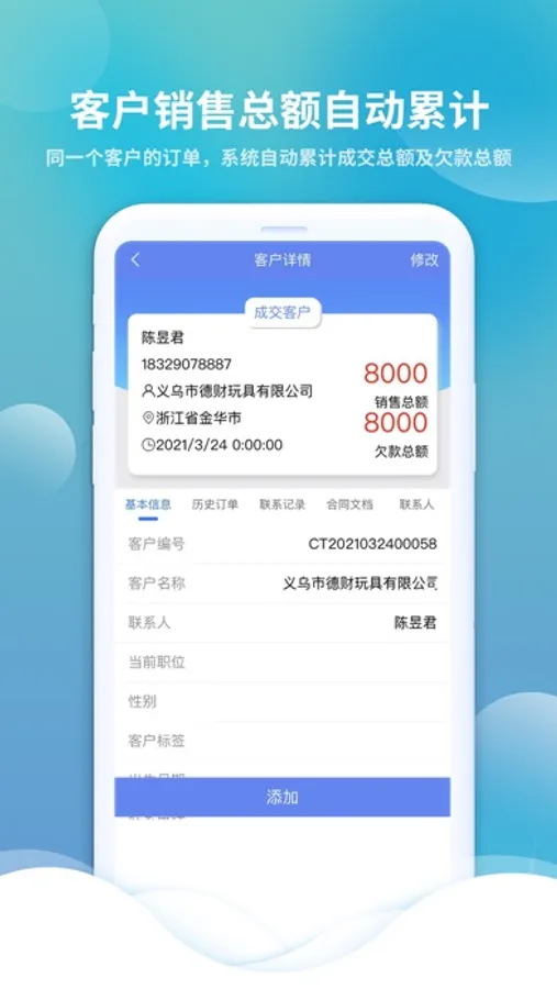 星烛订单系统还有客户管理的功能,同一个客户的订单自动归集累计销售额。