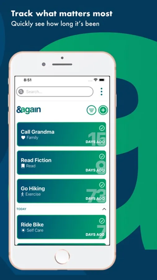 Life moves fast and we can find ourselves mindlessly doing the next thing. &again helps you track and remember to build a life out of those things which are most important to you during this season.
