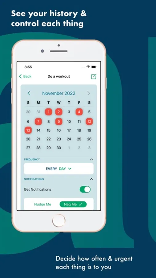 Notifications can be set to remind you at a custom time when the desired period of time has passed.