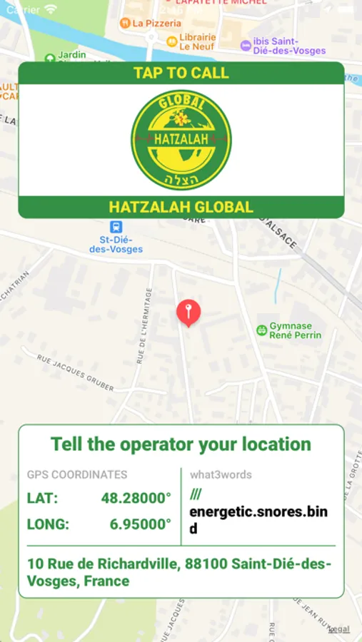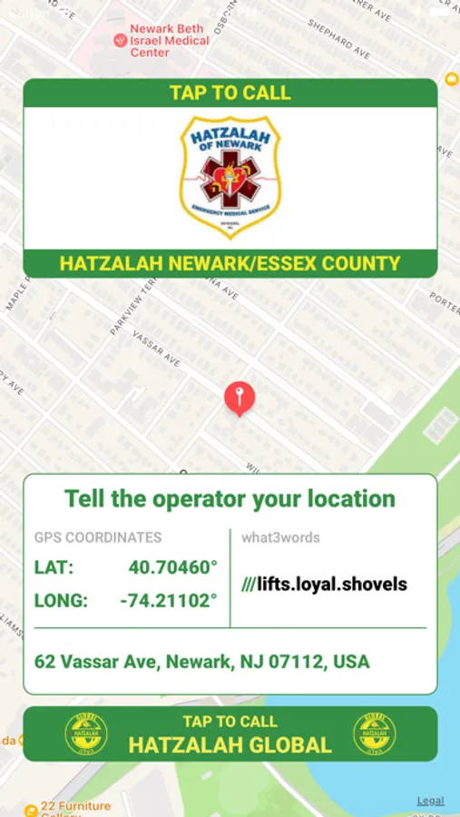 Hatzalah Global's new app enables you to easily call Hatzalah Global in case of an emergency. Hatzalah Global's call-takers will endeavor to assist. GPS integration allows your exact location information to be sent to emergency call-takers when the emergency number is called.