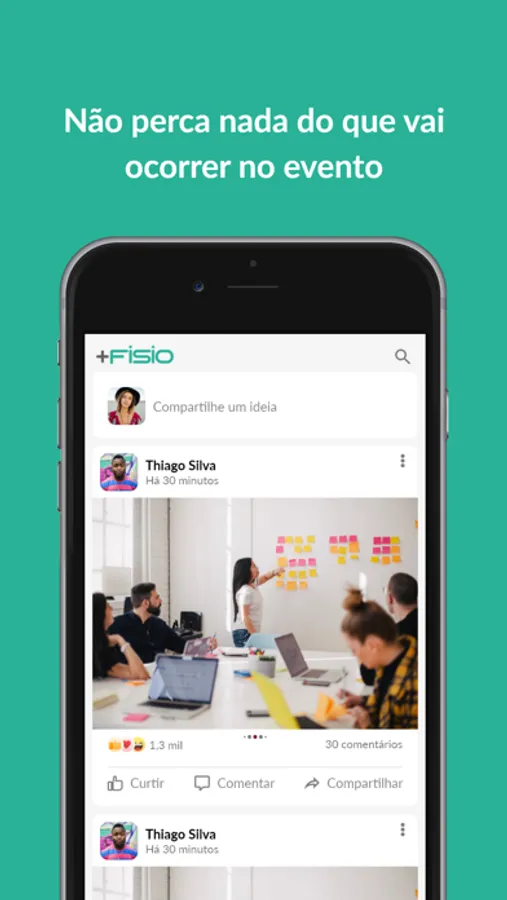 Com o aplicativo Mais Fisio, você tem acesso a uma rede social exclusiva, pode fazer novos contatos, enviar perguntas aos palestrantes, trocar mensagens com outros participantes, enfim, interagir com a comunidade. Além disso, você pode consultar a programação, avaliar conteúdos, dar feedback e responder quizzes. Utilize o APP e aproveite ao máximo os recursos.