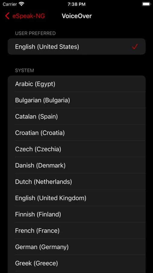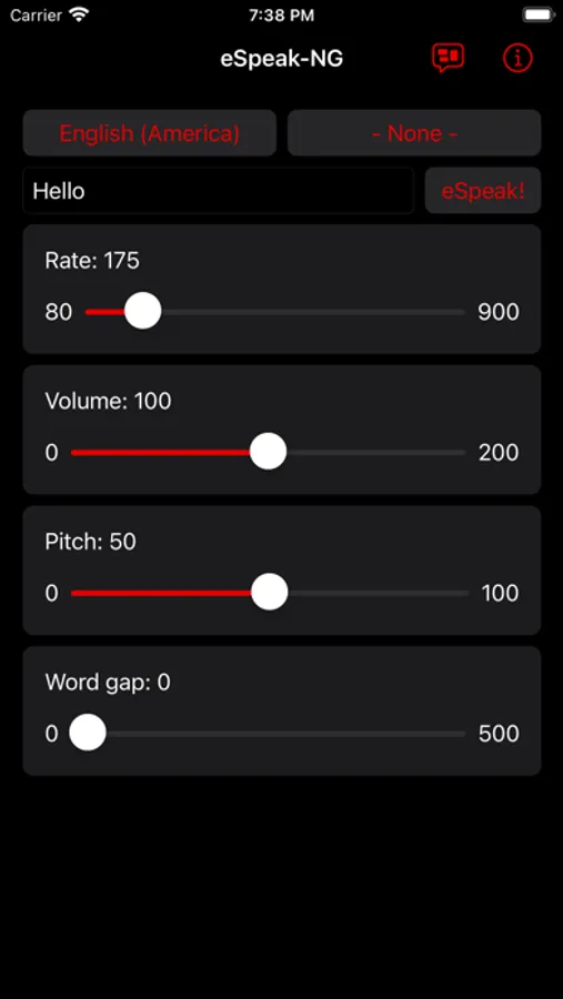 This app adds a compatibility layer between eSpeak NG library and Apple VoiceOver.