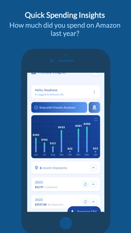 Welcome to Friendly Shopping Insights! Our app is designed to help you track your spending and shop on Amazon without being bombarded by ads.