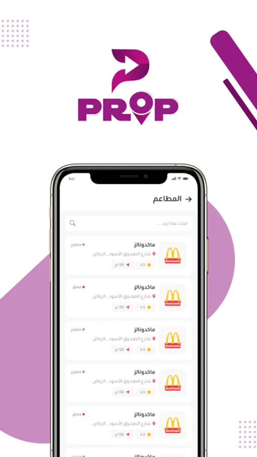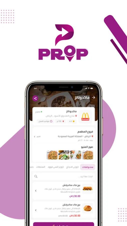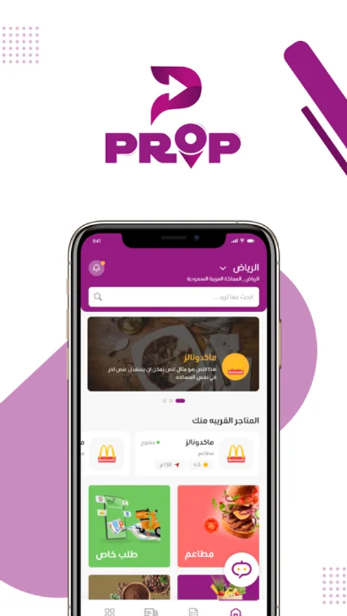 احصل على تجربة توصيل مميزة بأقل الرسوم، شراء جميع ما يلزم منزلك بدون بذل أي جهد من أكبر تشكيلة من المطاعم والمحلات المتواجدة في المملكة، فقط على تطبيق prop.