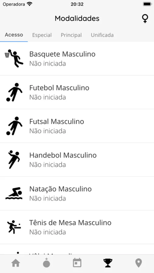 - Ver o calendário de jogos da competição, chaveamento das modalidades e classificações