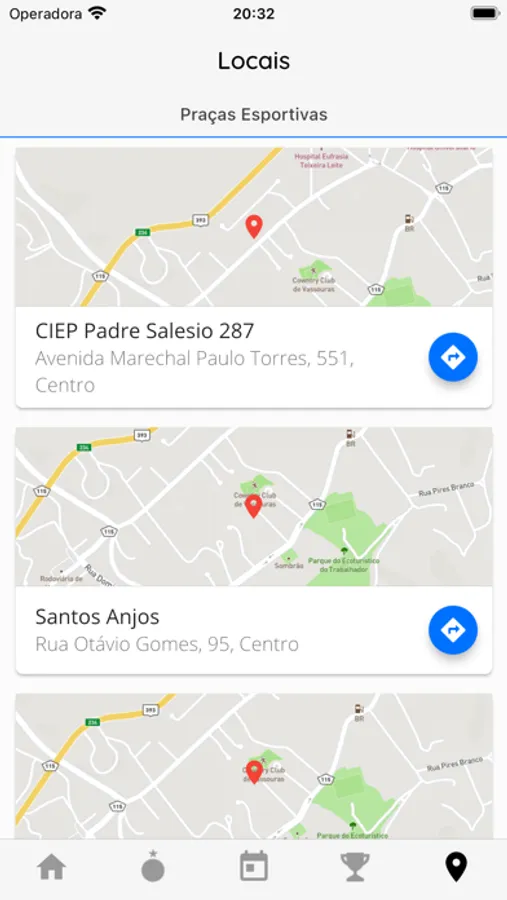 - Consultar os locais de jogos e obter rotas para eles