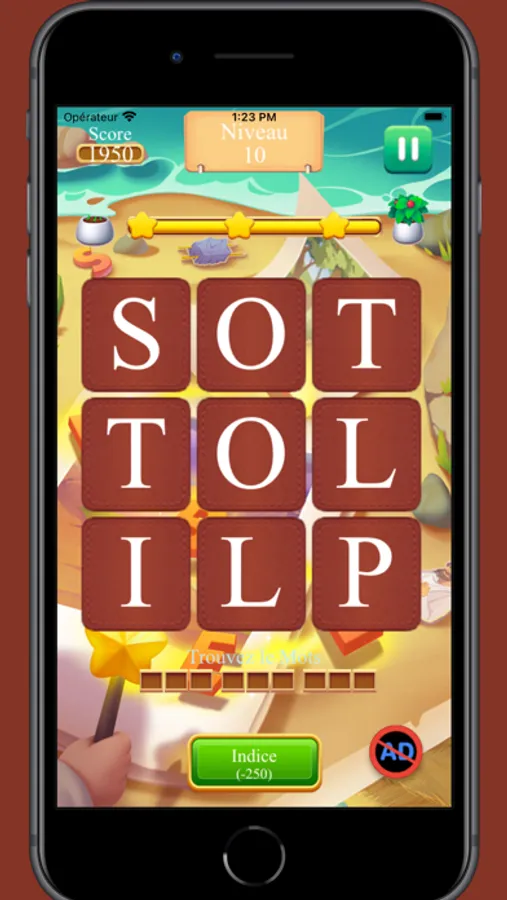 Défiez le célèbre jeu de mots en français King Des Mots avec plus de 100 niveaux de puzzle de mots à deviner