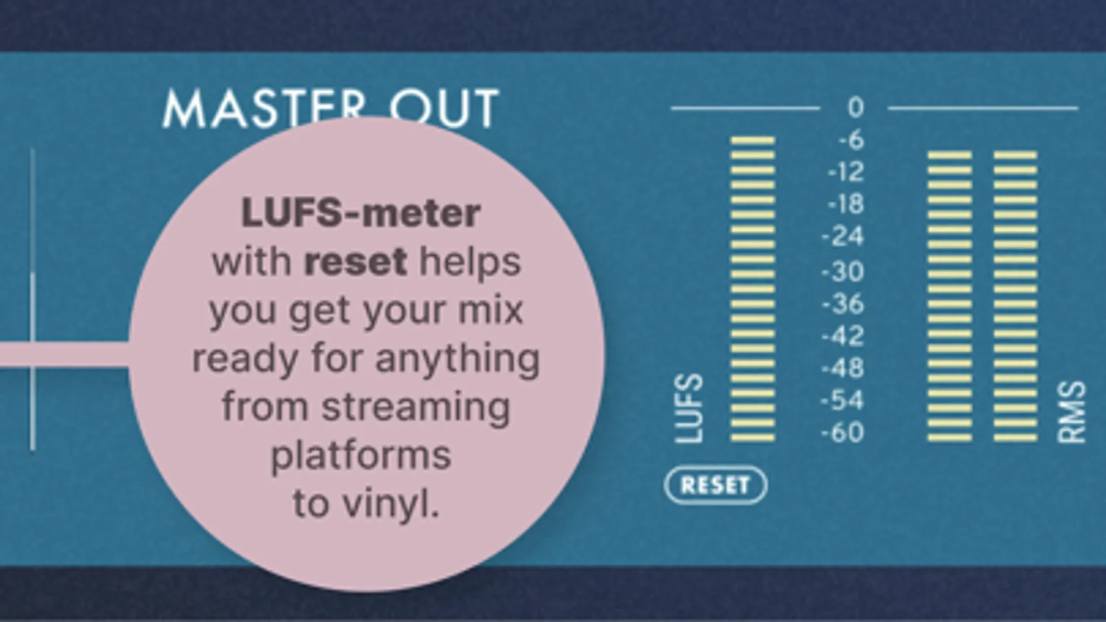 • Accurate RMS and LUFS metering (tap the meters to swap)