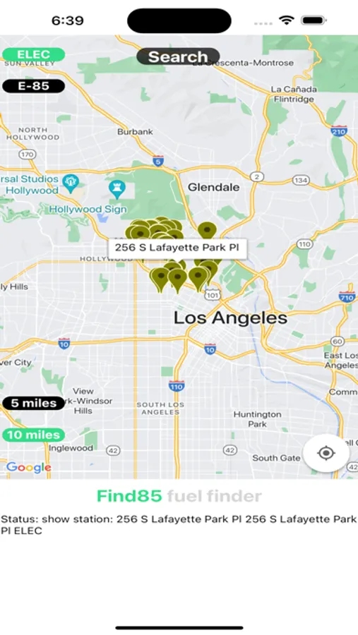 Find ethanol (E85, flex fuel) stations. Move the map where you want to search, select the search radius and E85 or Electric and then Search.