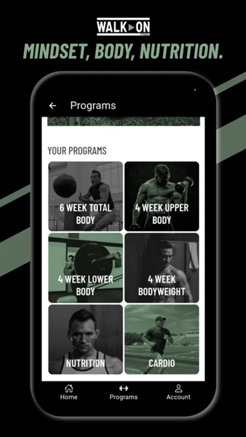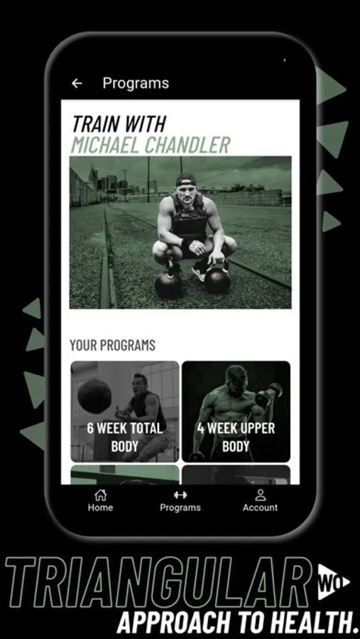 At WalkOn Fitness, we are committed to the Triangular Approach to Health - Mindset, Body, and Nutrition. With our premium subscription, you will get access to programs such as the 6-Week Full Body Program where Michael Chandler leads you through a challenging series of workouts.