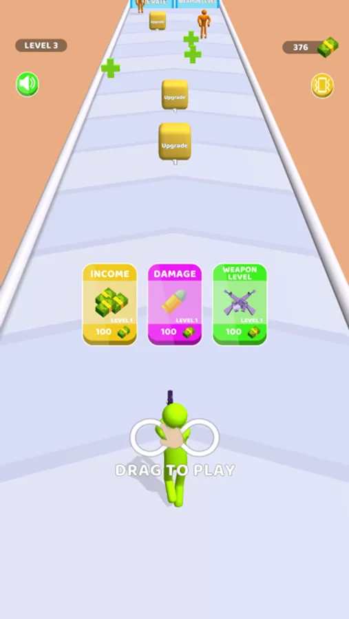 Upgrade your weapon and destroy your enemies by collecting boosters in this adventure..