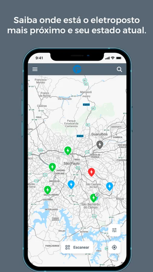 Através do nosso mapa, você pode navegar de maneira fácil para encontrar as estações de carregamento mais próximas de você. Os filtros de busca, status e fotos das estações irão te orientar para a melhor experiência de recarga do seu veículo.