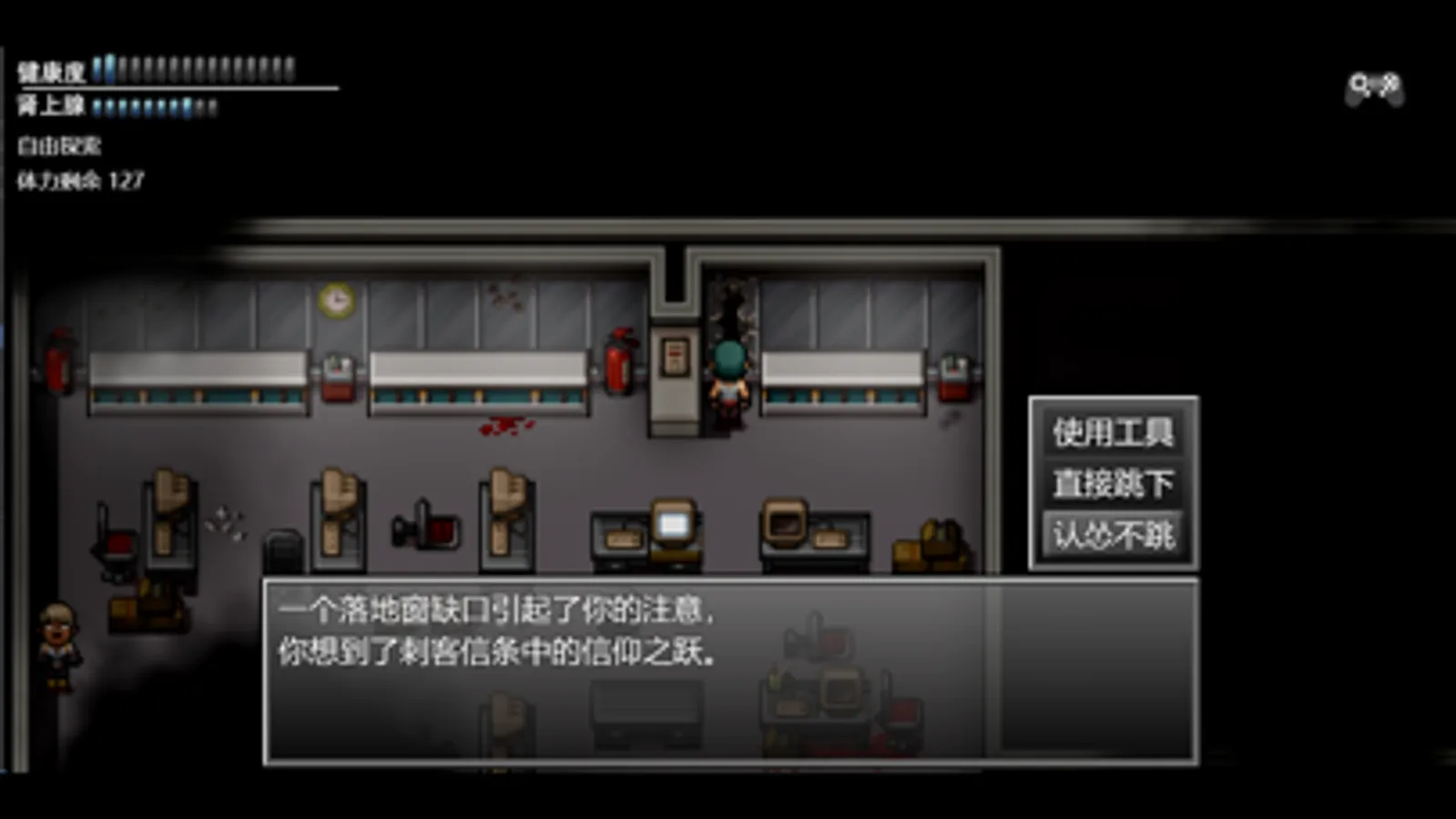 丧尸病毒爆发第101天。你是一位超市顾客,在你进入超市抢购物资的时候,丧尸潮包围了整栋商业大楼。你凭着本能躲进了洗手间的隔间。一旦离开这个房间,你随时可能遭到丧尸的攻击。你已经100天没有离开过洗手间了,马桶的异味令你无法冷静思考。你对等待救援早已失去了耐心,所以你决定孤注一掷……如果末世真有未来,第101天你会怎么做?