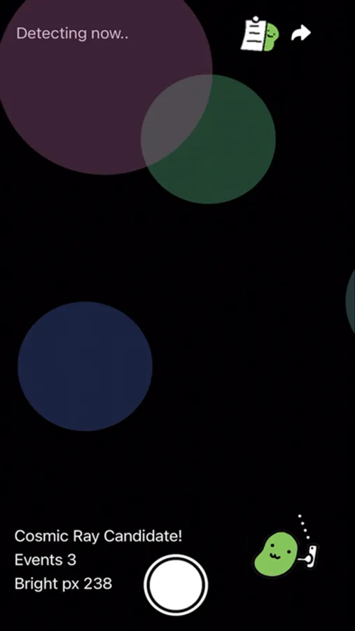 This is an app developed in collaboration with Kanagawa University (Faculty of Engineering in field of applied physics, Hibino Laboratory) to achieve scientific research and science education goals by observing cosmic rays. Cosmic rays are high-energy particles that come from within our galaxy or from outside of it and enter Earth's atmosphere, creating large amounts of secondary particles through reactions with atmospheric nuclei. The goal of this app is to capture these secondary particles using the camera sensor of a smartphone. On average, secondary particles from cosmic rays rain down on Earth at a frequency of about one particle per minute per square centimeter, and they penetrate not only our bodies but also materials like stones and concrete. When these particles pass through a camera sensor made of silicon, they leave a faint trace resembling a scratch. This app searches for these traces in digital images taken in complete darkness, with visible light blocked out. LivePhoto function is used, and it is recommended to use a device that is not typically used.