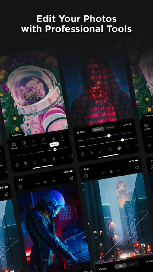 Create incredible AI images and videos, reimagine your photos and videos, generate AI speech, increase your productivity and creativity with our AI-powered tools, give your photos a film aesthetic with cinematic presets.