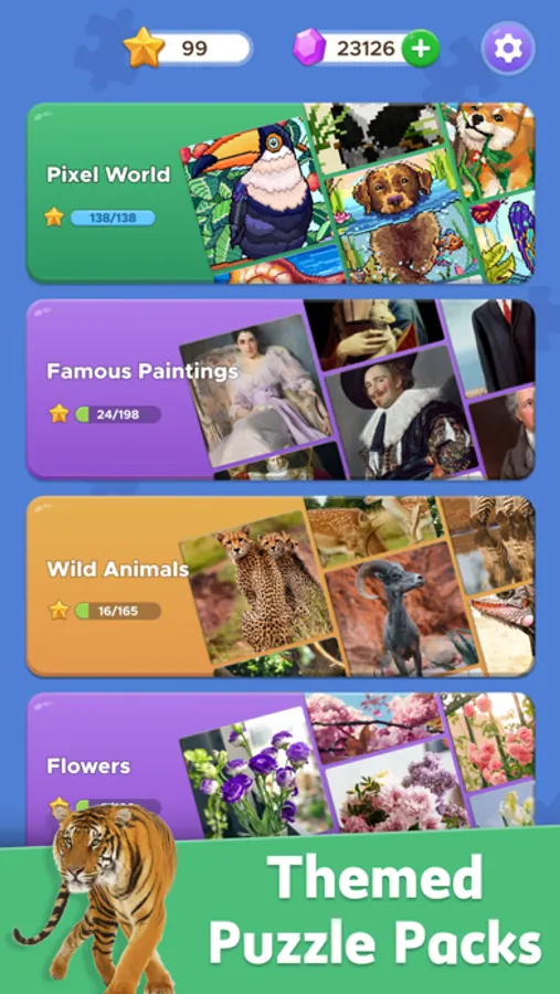Jigsort Puzzle Games is a new picture-sort puzzle game. Unlike classic jigsaw games, this art puzzle game has simpler controls and more casual gameplay. However, it's not as easy as you might think when you level up, and you'll feel a great sense of satisfaction when you complete these puzzles.
