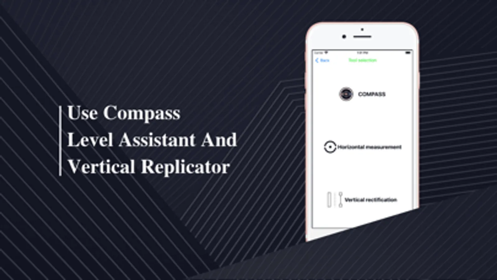 The compass function is built in, and the level assistant and vertical replicator can also be used