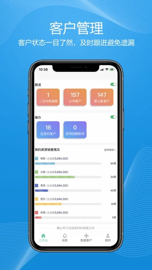 房客云APP是一款房地产售楼管理辅助工具,功能包含客户管理、房源查询、售后管理、财务管理、移动审批、统计图表、来访登记、开盘签到、渠道管理等,方便用户随时随地进行客户管理、售楼交易等操作。