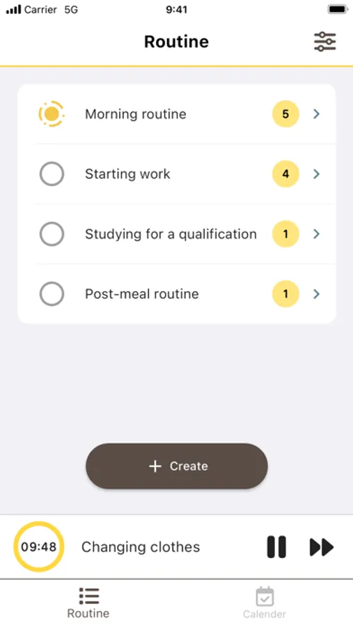 • Log completed routines in an easy-to-view calendar, facilitating a quick review of your consistency and aiding in habit formation.