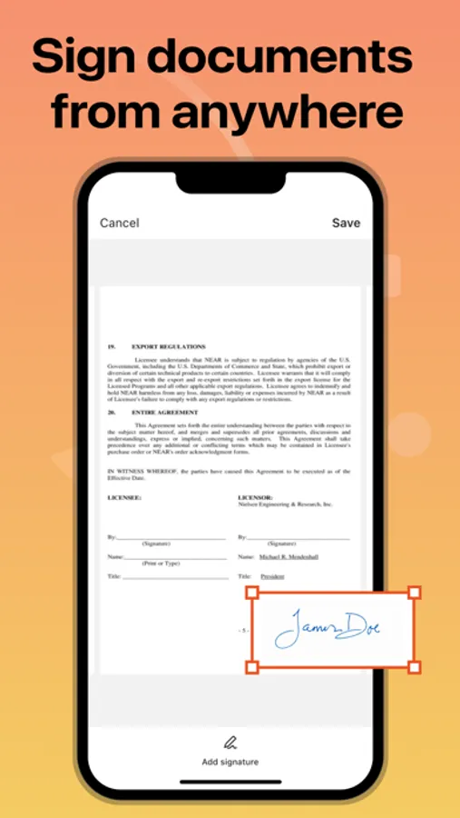 Need to quickly sign a document? You don’t have to look for a printer and scanner. Just import a photo or PDF of your document to our app and e-sign it in the fastest and the most efficient way possible.