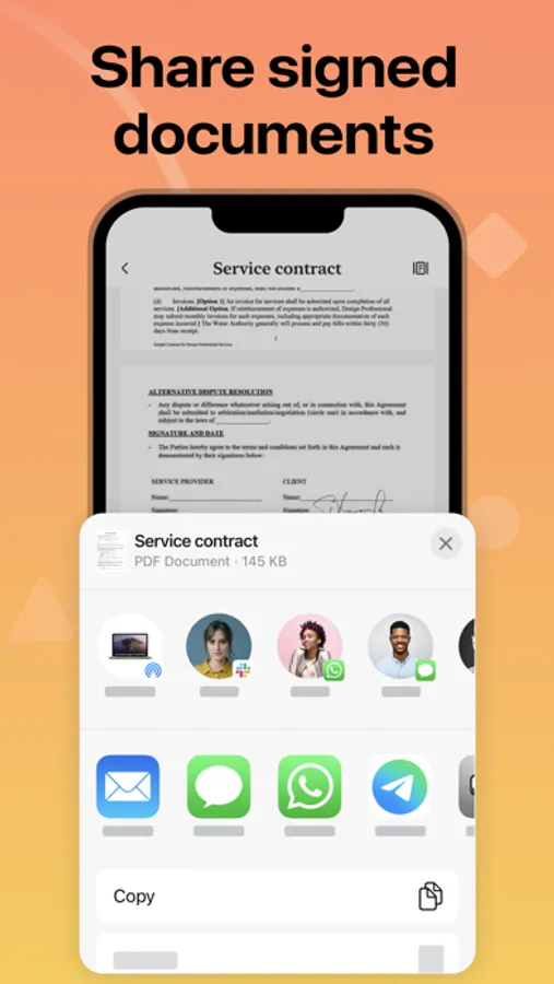 - Share signed documents however you prefer: email, Dropbox, iCloud, iMessage, WhatsApp and many more