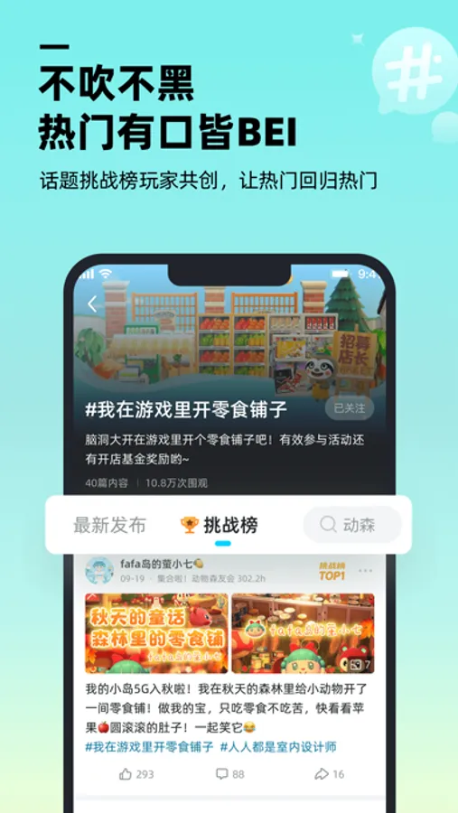 - 热门游戏话题玩家共创发起和参与,发现真正属于游戏玩家关心、关注的游戏话题