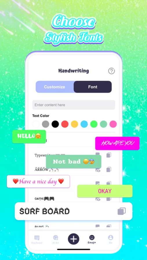 Different stylish and unique fonts, 1000+ emojis, and funny text art will make your text content more vivid.