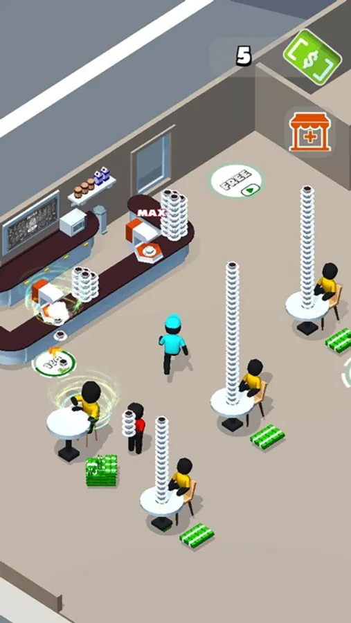 Expand your cafe with the money you earn. Get more restaurant booths, hire waiters and Speed up the serving.